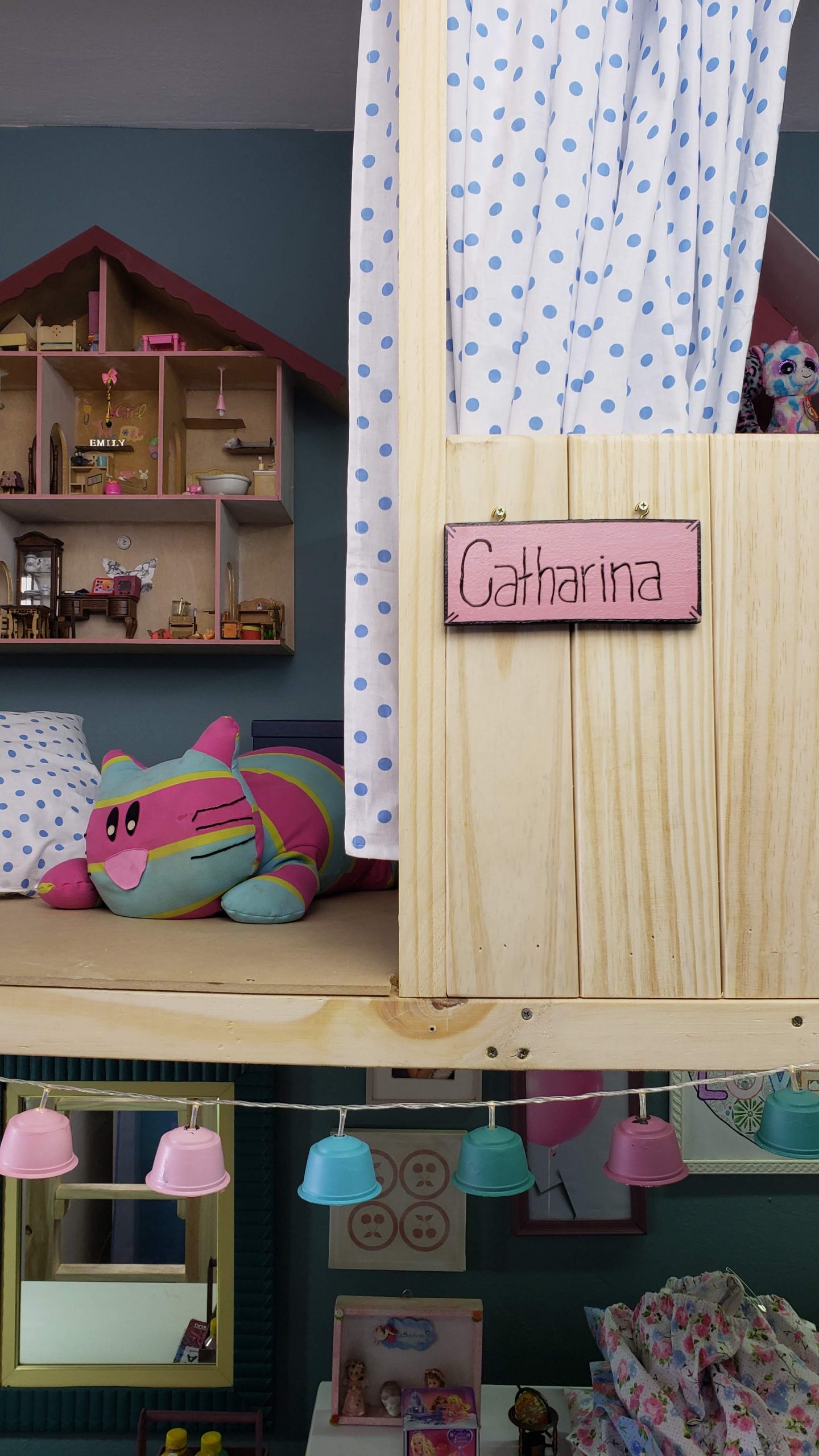 Catharina era a dona solo do quarto, e teria que receber a irmã de 1 ano para dividir seu espaço. Então o projeto foi desenvolvido para manter sua individualidade, respeitando seu universo particular